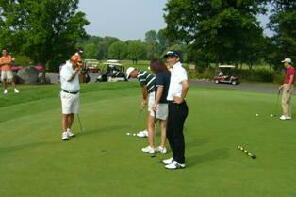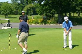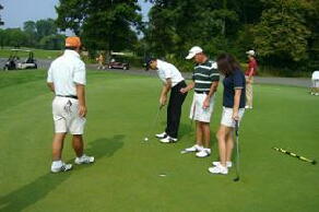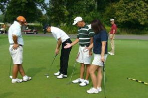 朝からグリーンのスピードを確かめる会員の方々