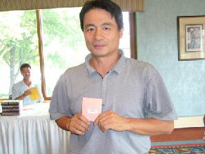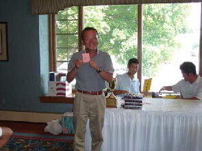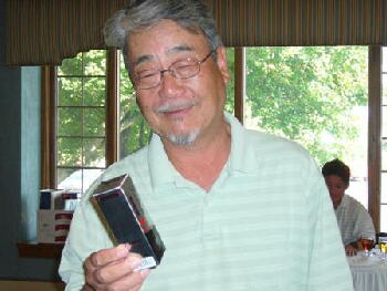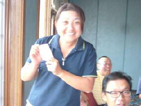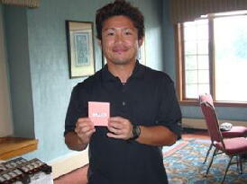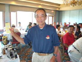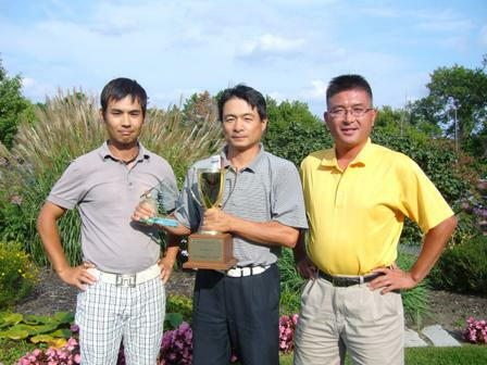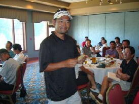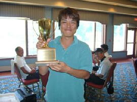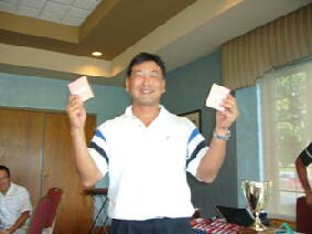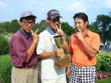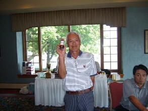 会長のサングラス姿(左)と優勝者(真ん中)