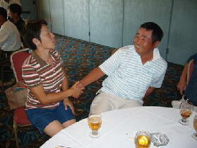 右:「会長、そのグラサン、合ってますねぇ〜握手ぅ〜!!」