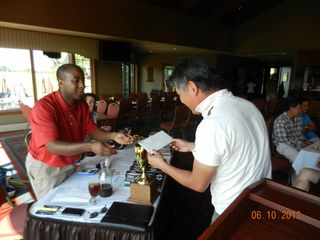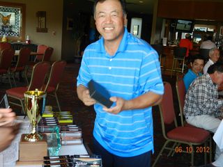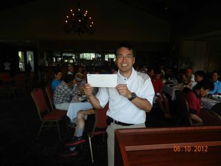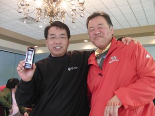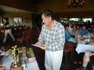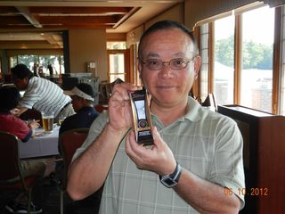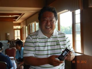 | パットの名手猿川さん、同じホールで9パット。 お・み・ご・と!マイクさんから特別賞。(*マイクさん特別賞シリーズ2/3) | |