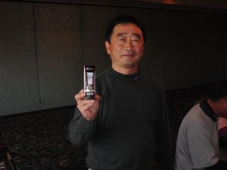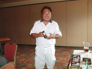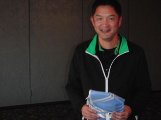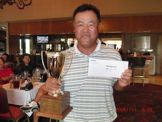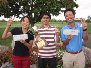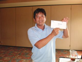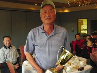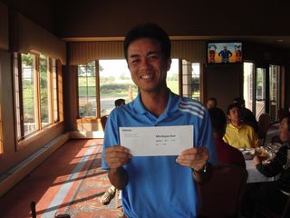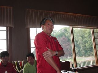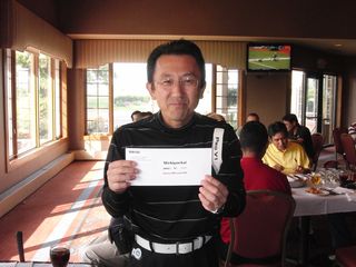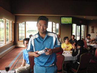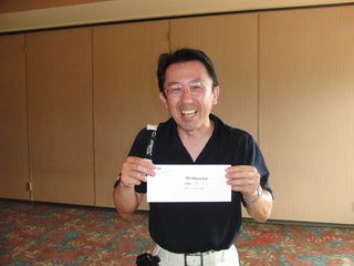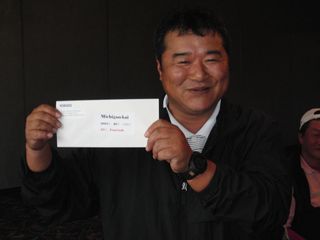 | 昨日の長距離ドライブの疲れで朝の受付時には欠伸が絶えなかった有田さん。最初のホールでトリプルを叩きながらも、終わってみればミシガン会自己初の80台をマークして見事2位入賞!逆境に強い男です! | |
