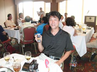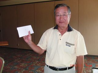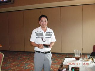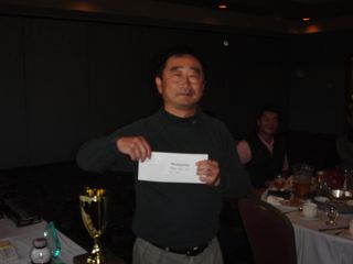 | 以前ミシガン在住だった頃にミシガン会会員だった全日空の小沼さん。出張ついでにゲスト参加されました。いろいろ景品を持ってきていただき、ありがとうございました。 | |