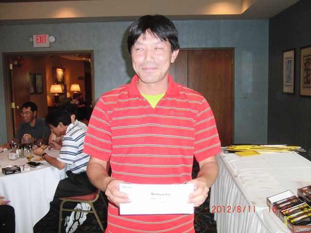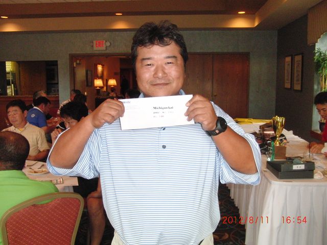 | ミシガン会前々会長の松川さん、お盆休みを利用して日本からの参加です!滞在中はゴルフ6連荘とか。。。少し痩せましたか? | |
