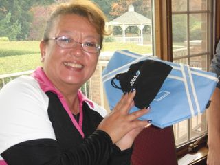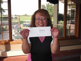 | #5でイーグル賞をゲット、西沢さん。80ヤードの3打目がワンバウンドでカップイン! 神様、ありがとう! | |
