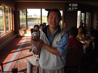 | #8ホールでイーグル奪取、森岡さん。 「すごいですねぇ、あのパー5、何で打ったんですか?」 「打たないと前に進まないからだよ」 「。。。」 | |