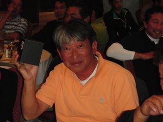 | ブービー賞は佐藤さん。最終回なので幹事業務の心配がなく、笑顔、笑顔、笑顔。 | |