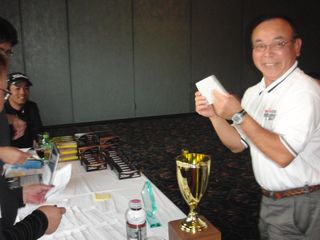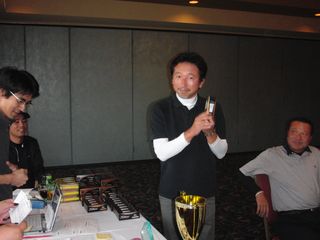 | 優勝候補と言われつづけて早3年、やっと念願の優勝カップに手が届きました。ナブテスコの渡辺さん、おめでとうございます! | |