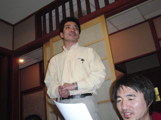 | 内藤さんと同じく、新年会が送別会となってしまったミシガン大学の中島さん。これからも研究とゴルフに精を出してください。 | |