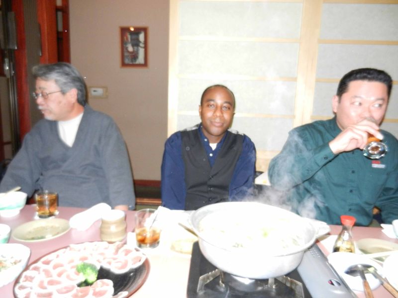 | 菊池さん、鴨鍋食べてないでこっち向いてくださいよ〜。 | |