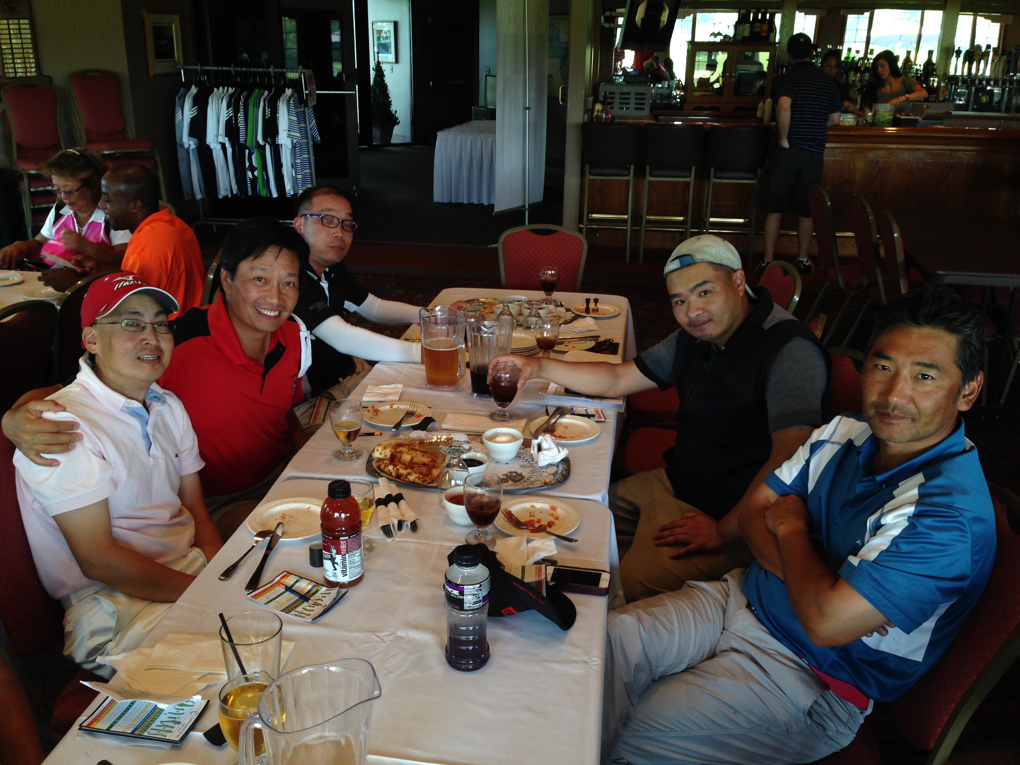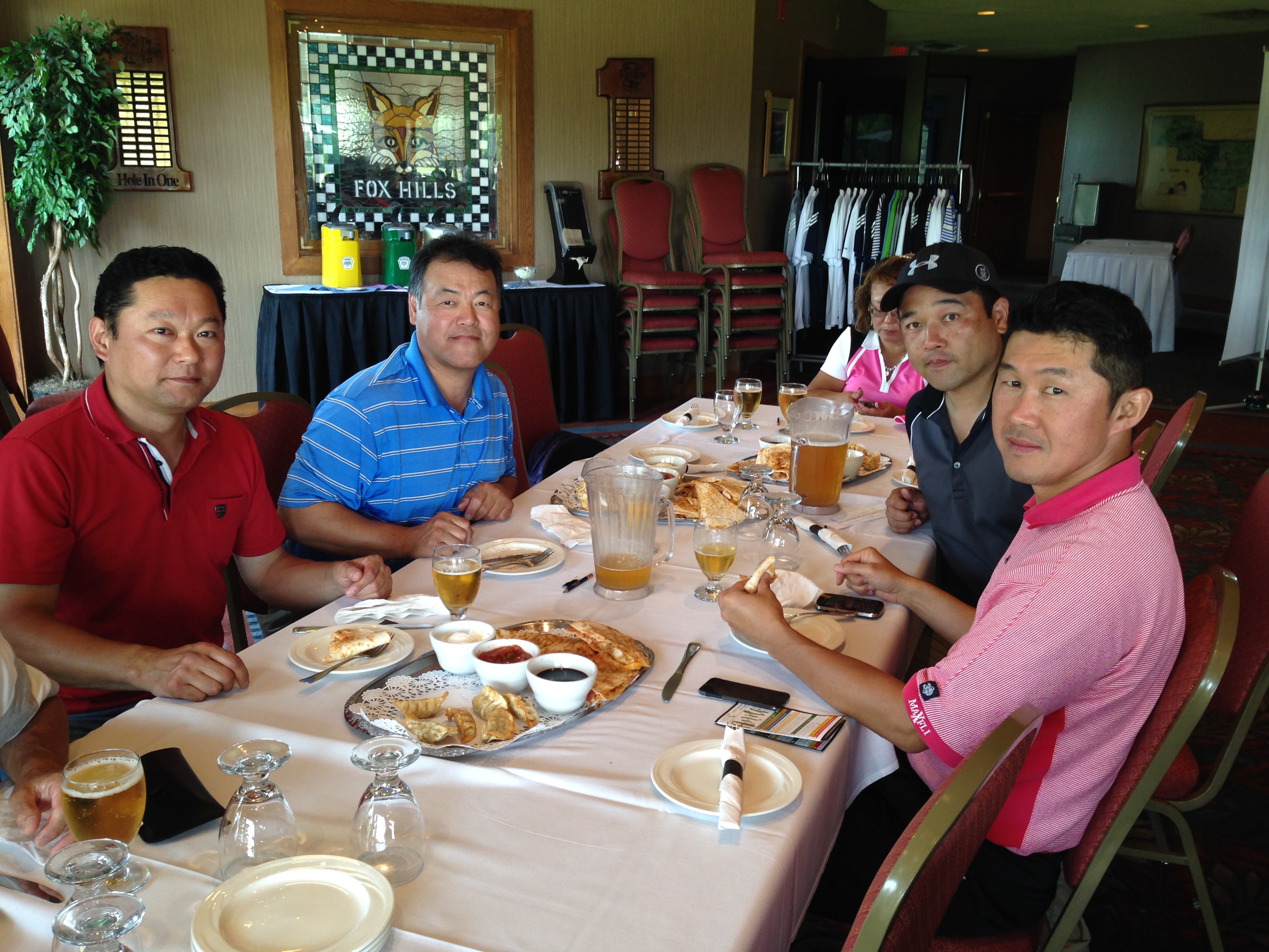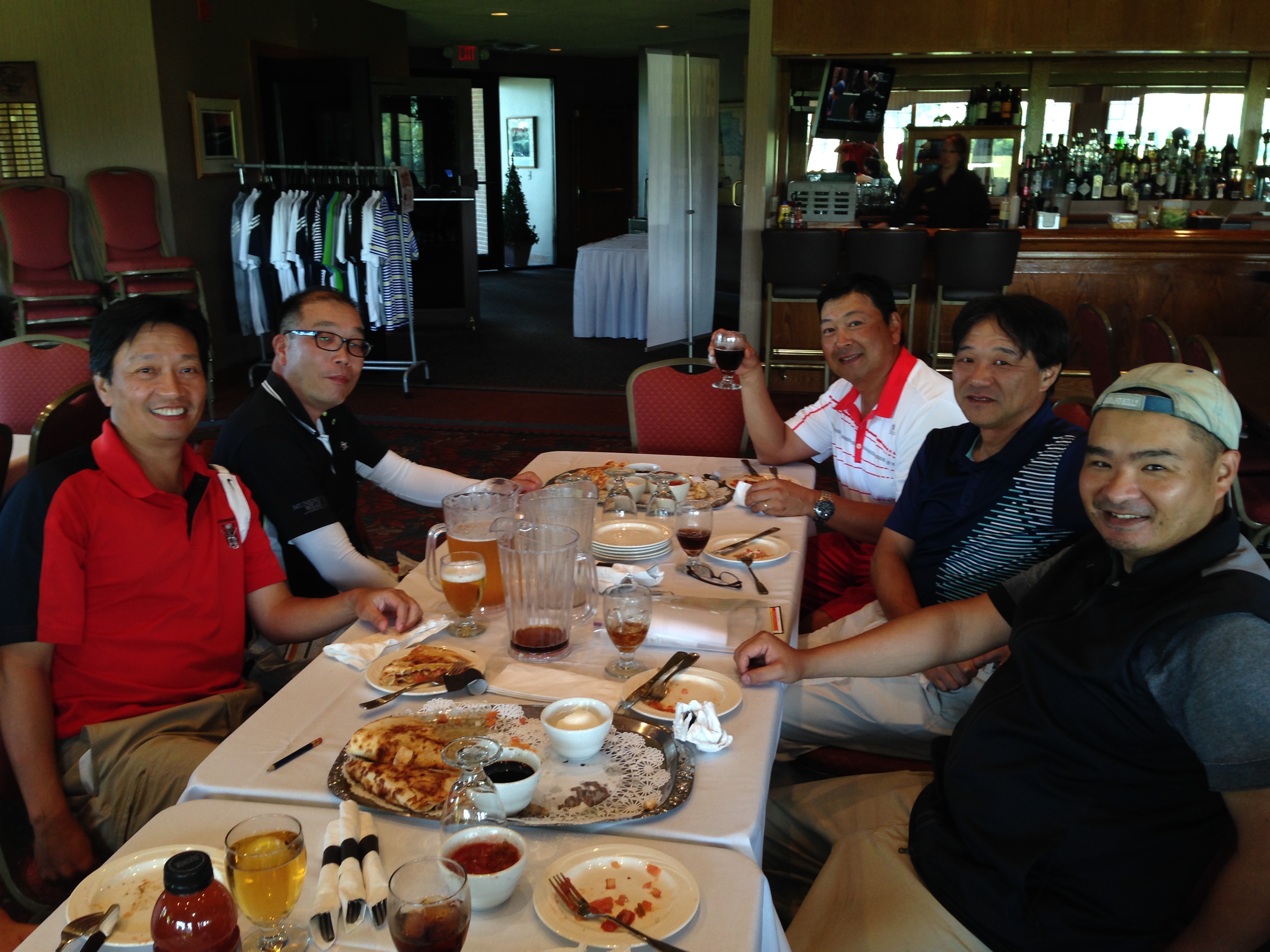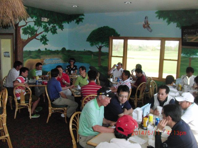 | 母の日パーティで1500名の客を迎えてるいつものメインフロアは使えず、パー3のStrategicのクラブハウスへ移動しての懇親会。餃子の数がいつもの2倍あったのはサービスだったのか? | |