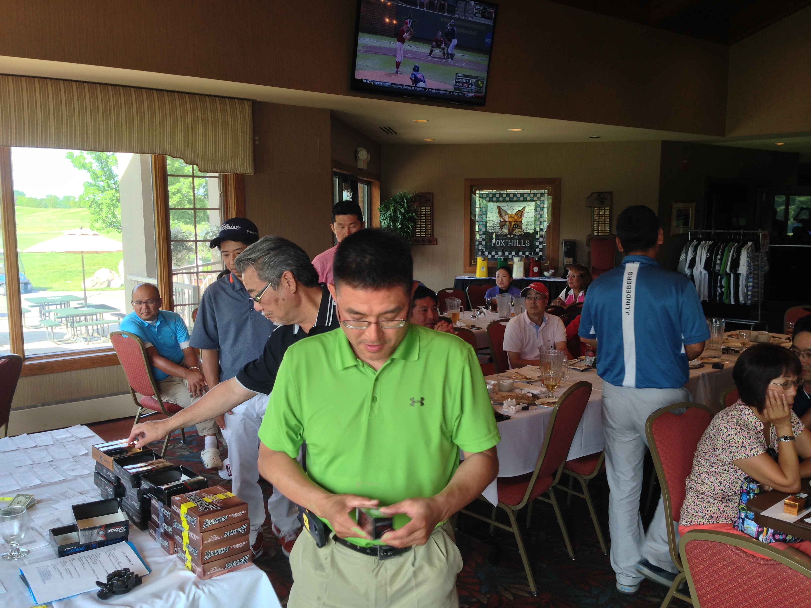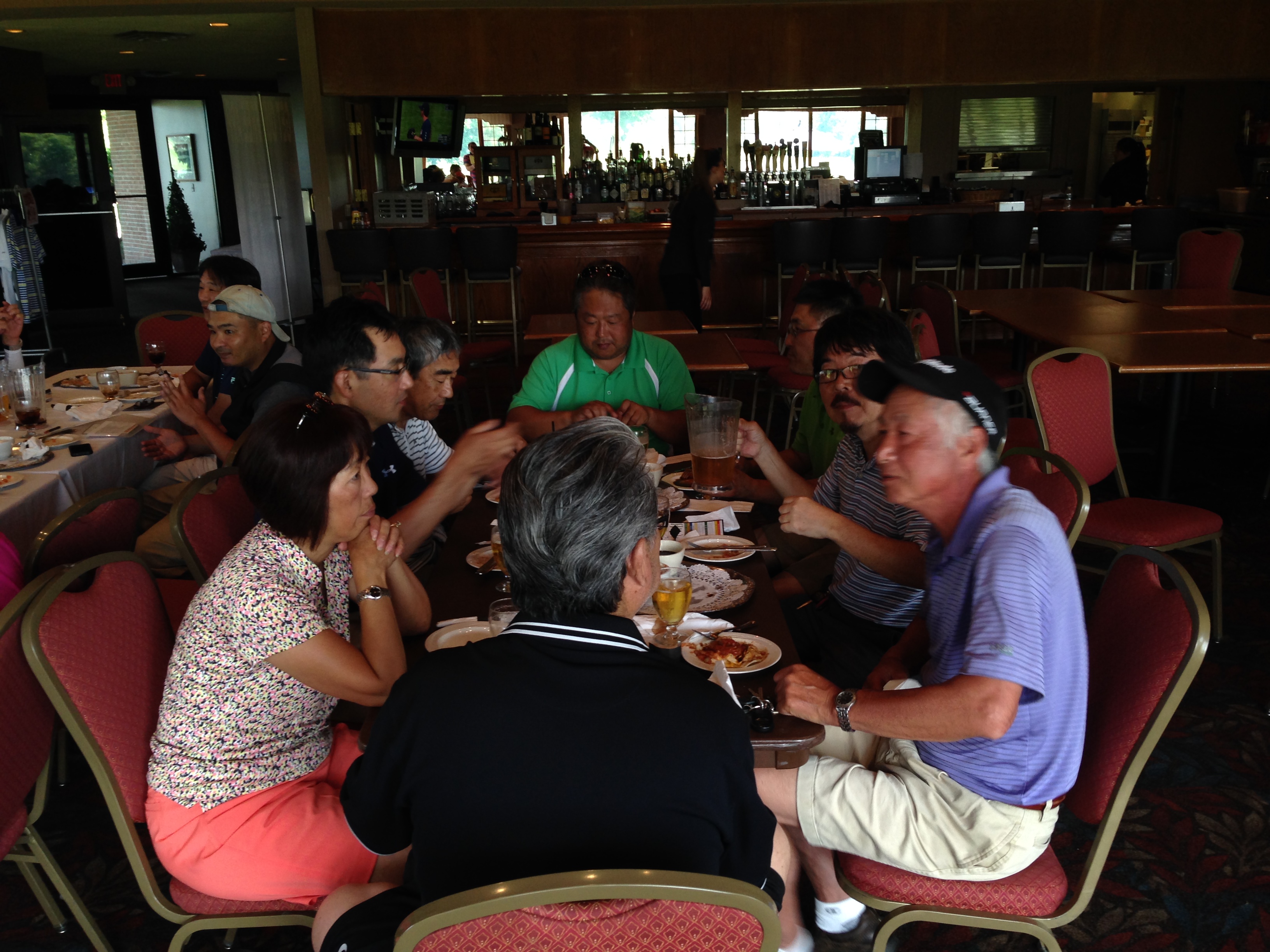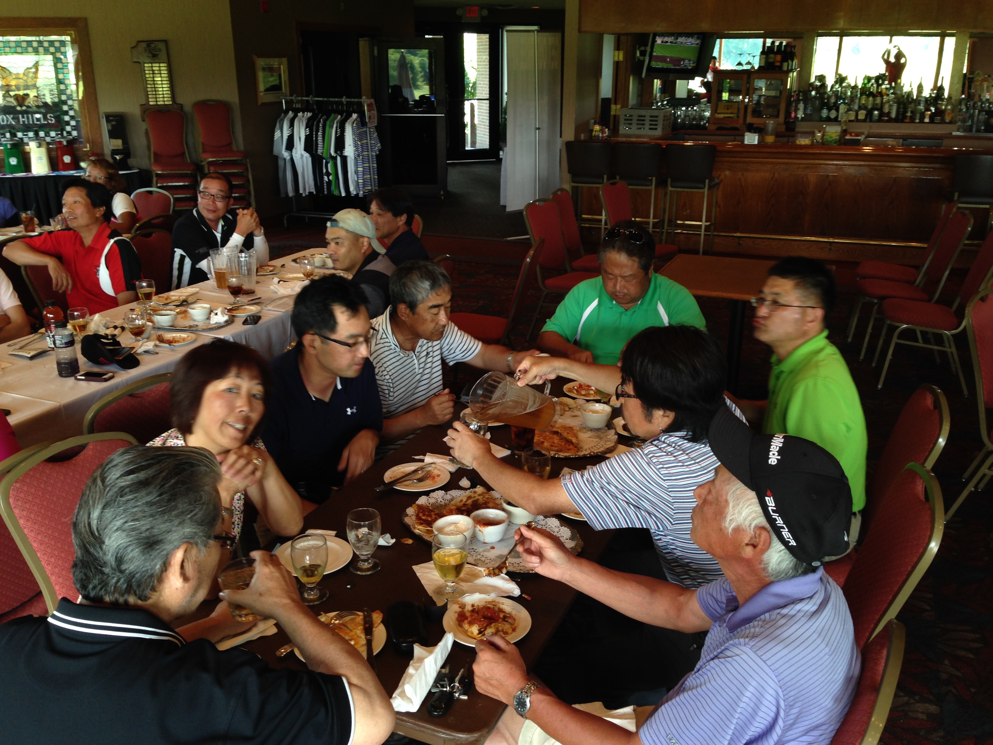 | 母の日パーティで1500名の客を迎えてるいつものメインフロアは使えず、パー3のStrategicのクラブハウスへ移動しての懇親会。餃子の数がいつもの2倍あったのはサービスだったのか? | |