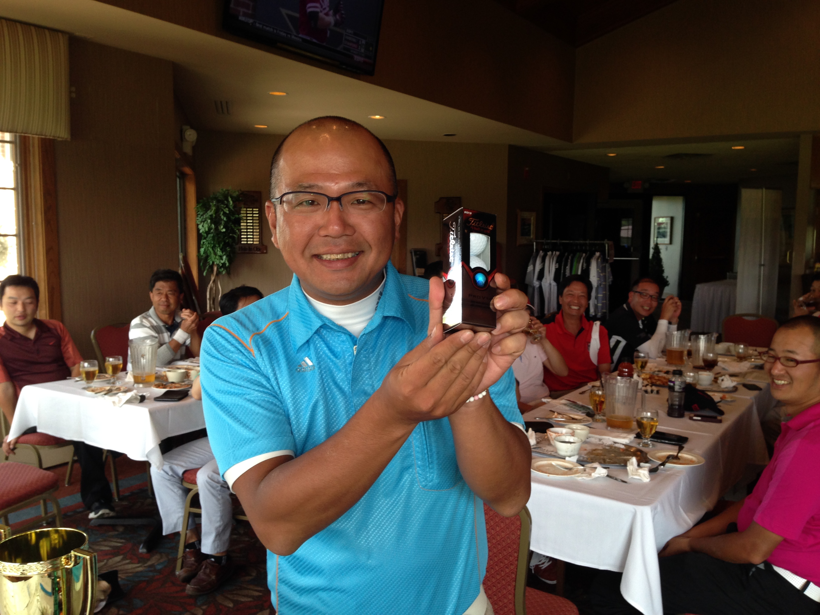 | バーディー賞の方々はProV1を1スリーブゲット。 中央の肩幅が広い方は、やっぱり | |