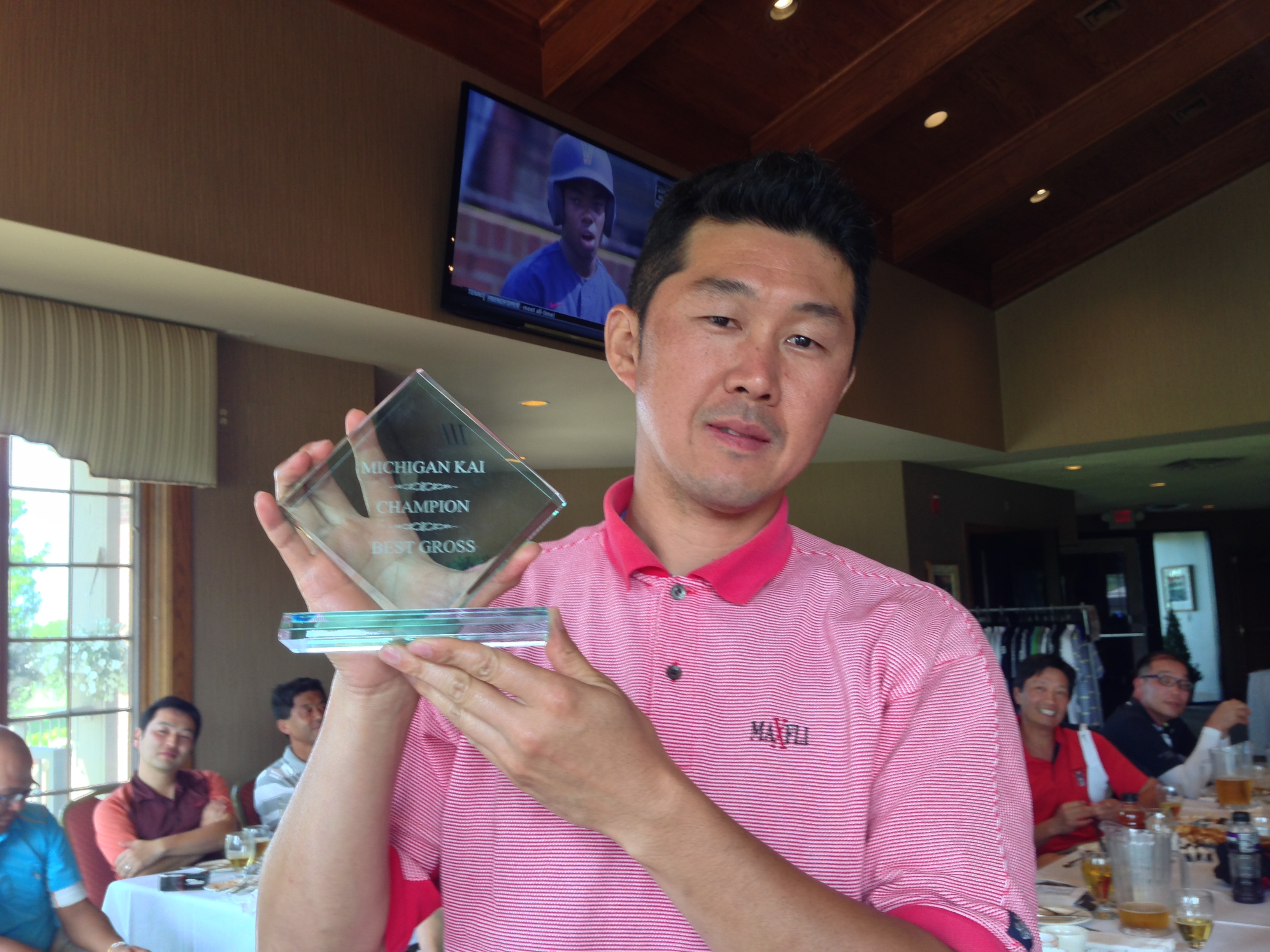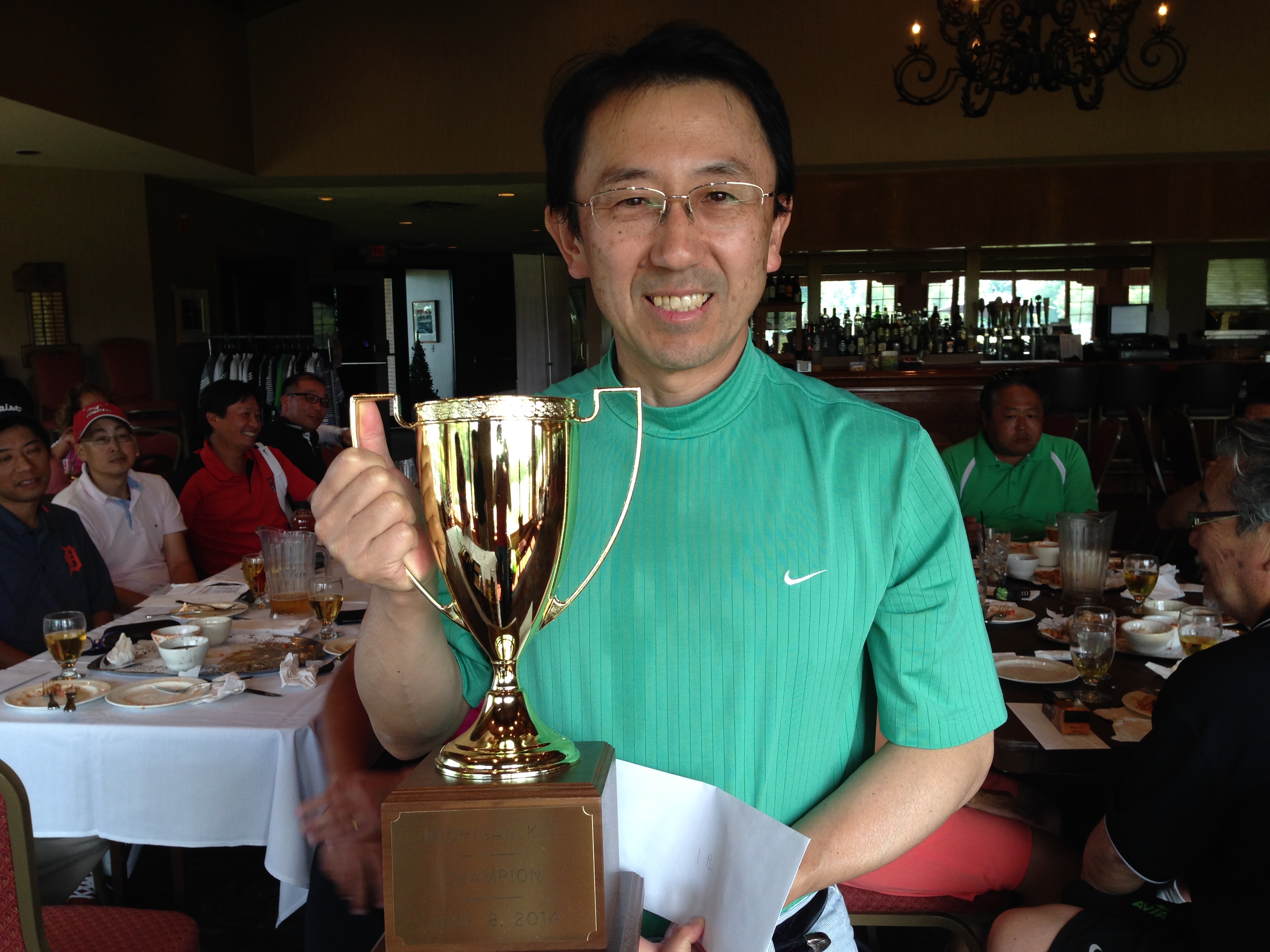 ![]() | ベスグロ優勝のマイク菊池さん。63才でのベスグロ優勝はミシガン会史上最高齢。歴史がまた塗り替えられました!菊池さんの優勝は2010年8月に続き2回目。 |