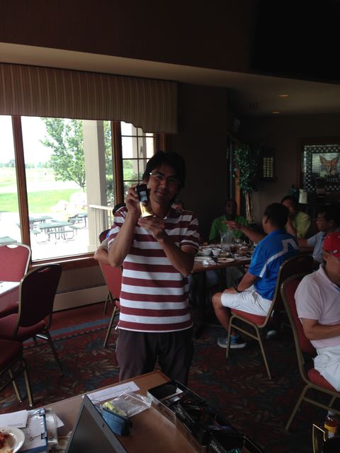 | 今年で帰任される渡辺役員。毎月の細かな集計やHDCP計算、スコア処理を瞬時で行うExcelマクロの作成、などなど見えない部分でのきめ細かい働きぶりで、ミシガン会を支えていただきました。日本でもご活躍ください。この地でまたいつか一緒にゴルフをしましょう! |