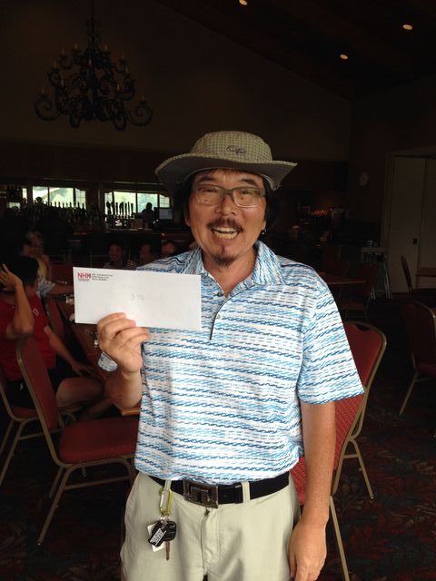 | ニアピン#12 今回のピンは220ヤード。おみごと。きっちりバーディも取りました。 | |