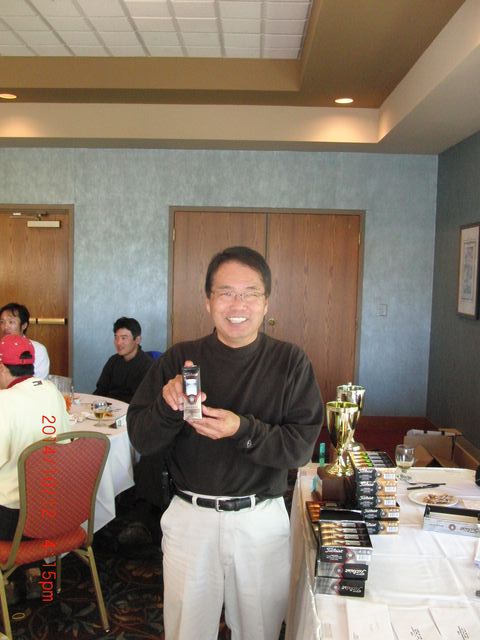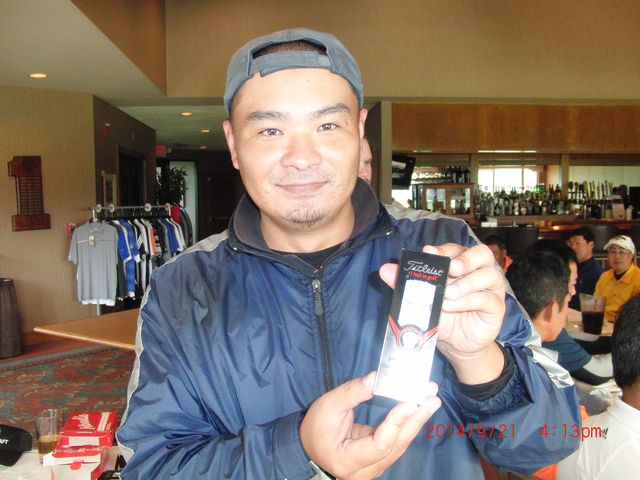 | 新会員のナガオカさん。今回初めてHDCPがついたのですが、いきなりのBB賞になってしまいました。でも最終回で良かった〜!来年から頑張ってください! | |