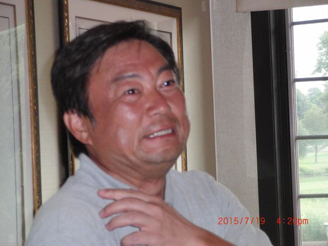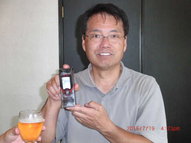 | ゲスト参加の前畑パパ。ラウンド開始からビールをガブガブ。スコアに固執せず、周囲を楽しくさせていただきました。またの参加をお待ちしています。 | |