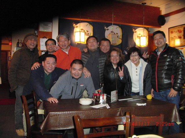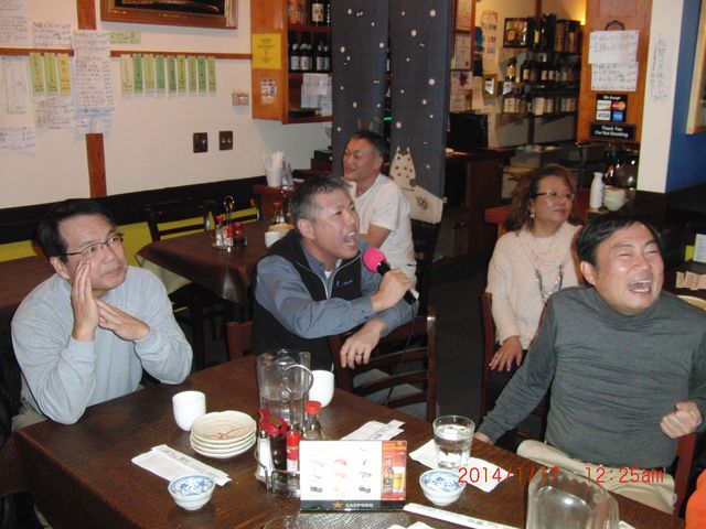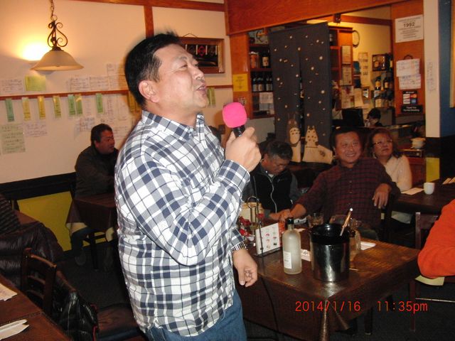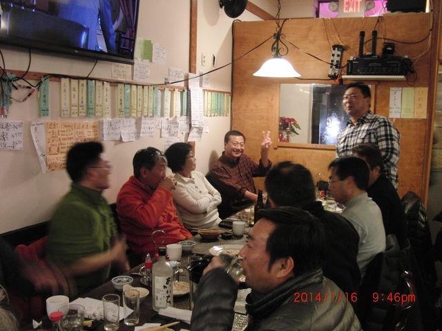 | 少し勢いづいてきたころに会長挨拶。会長の劇的な逆転優勝で2014年のミシガン会が幕を閉じた興奮がまだ少し残っているようです。 | |