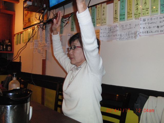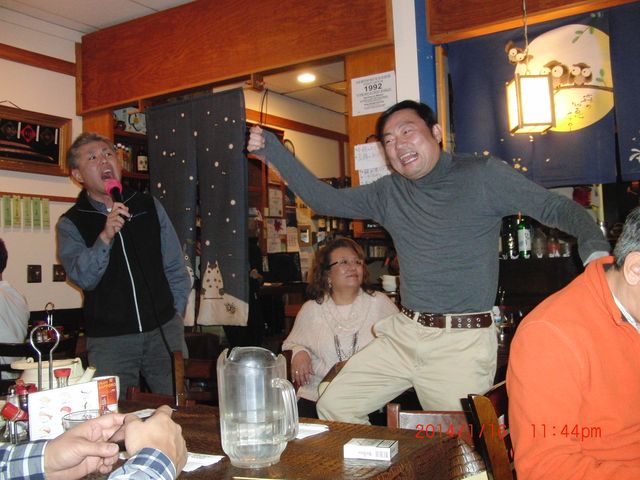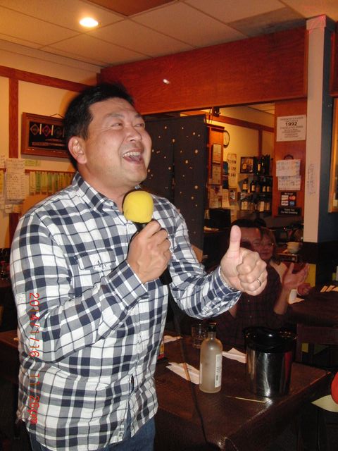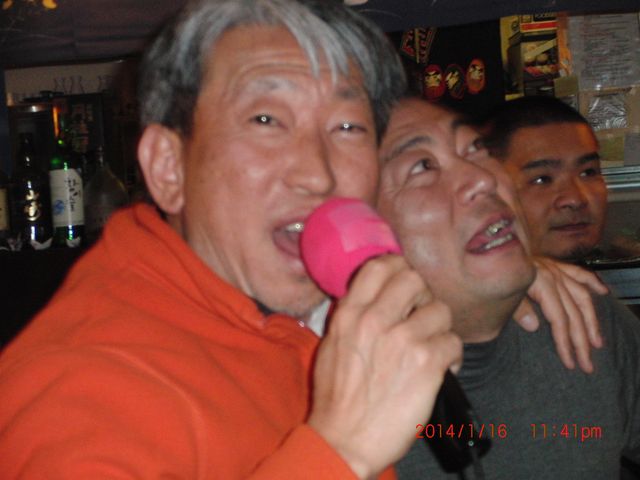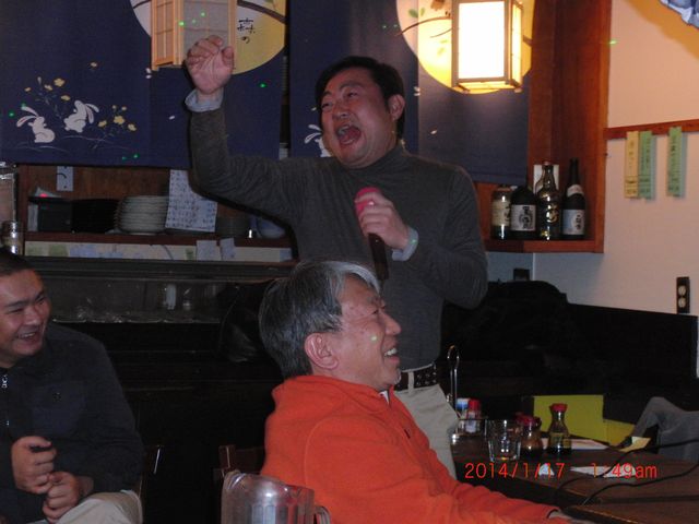 | そして同じ場所で2次会突入。カラオケが始まり、先頭を切ったのは、キャリーぱみゅぱみゅを踊りながら歌う下田会長。場を盛り上げます。 | |