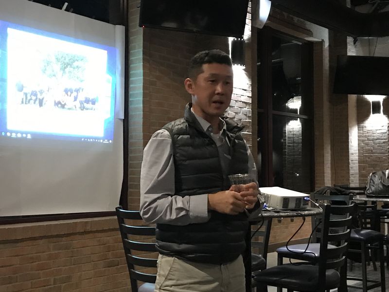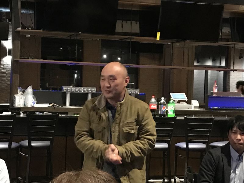 | 左から順にクイズ2位:尾城さん、1位:須川さん、3位:茶木さん | |