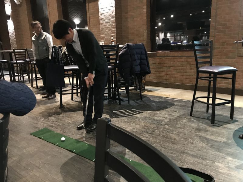 | 須川さんパッティングで勝利、完璧にカップイン | |