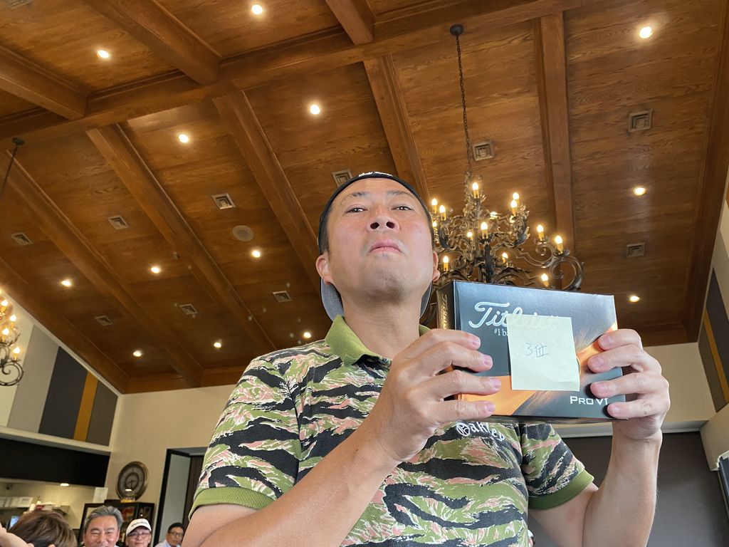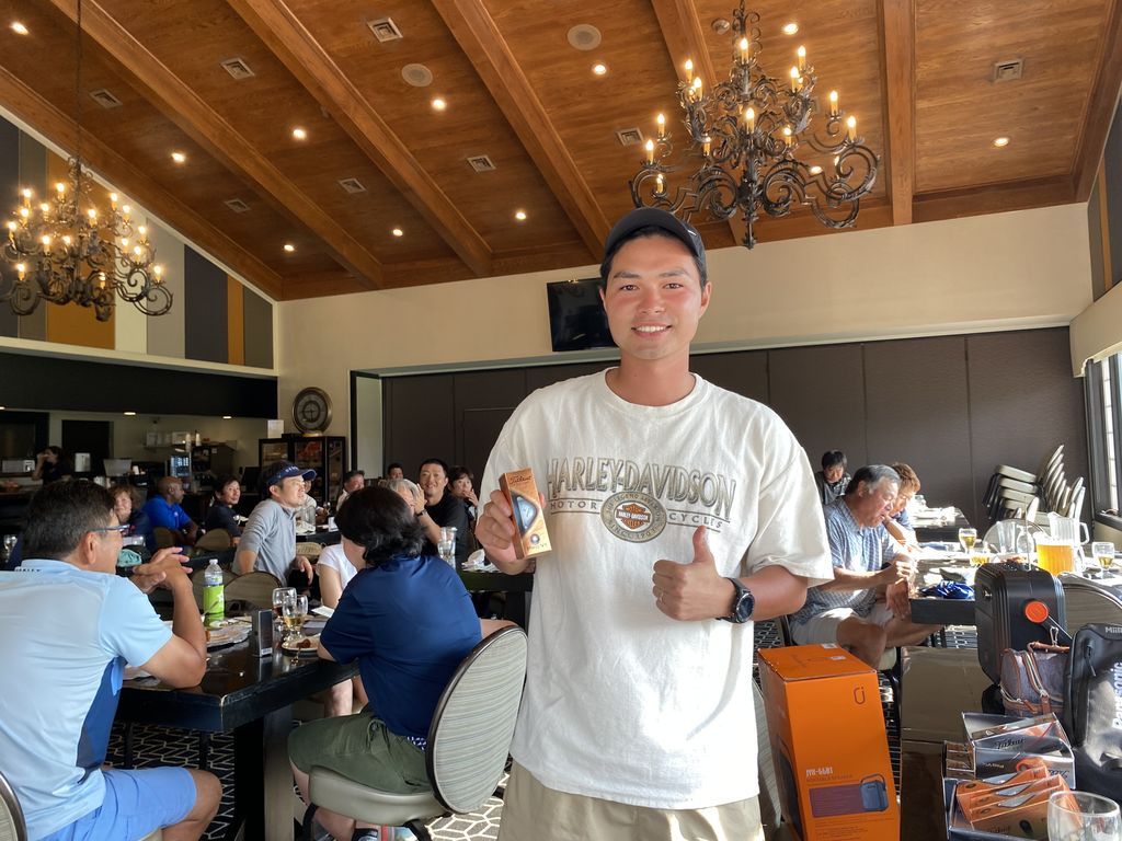 ![]() | 男性ドラコン賞 藤城さん 帰任前に有終の美を飾りました。 |