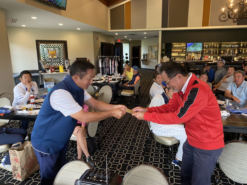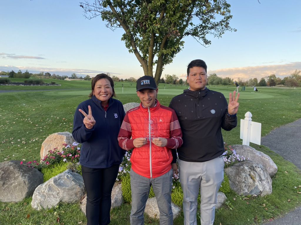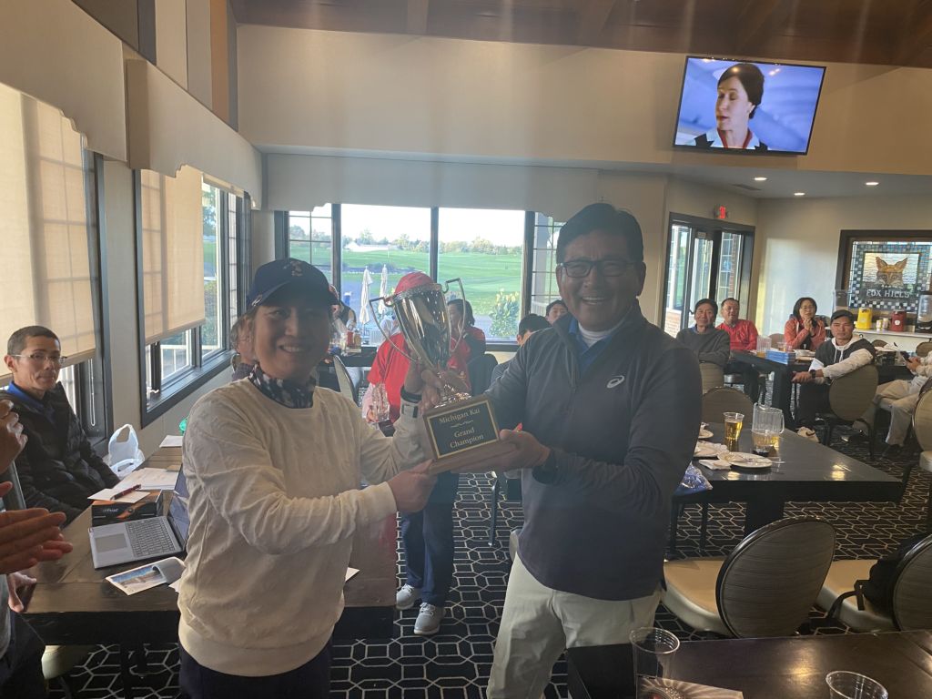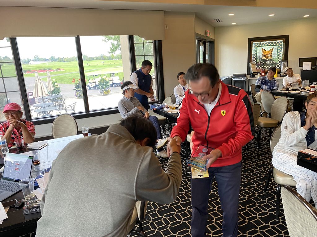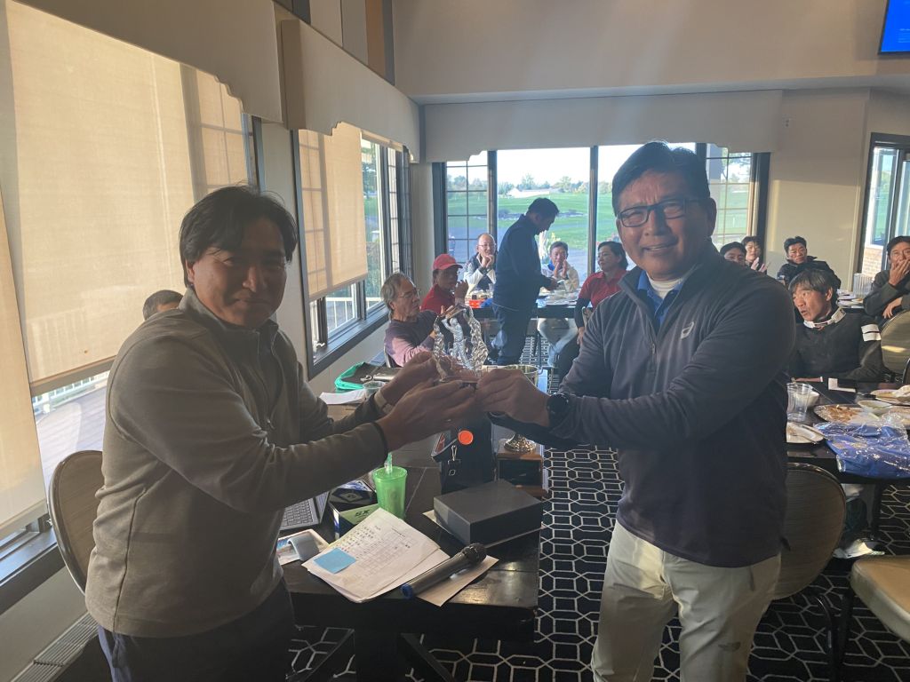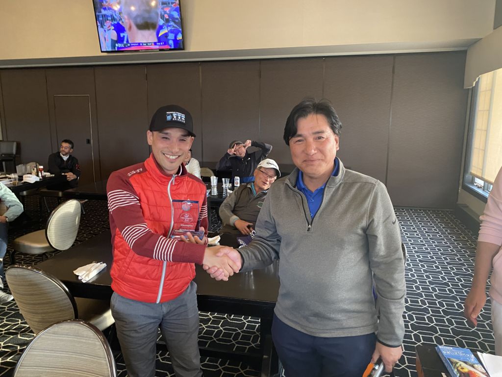 ![]() | 見事グラチャン獲得のケビン篠塚さん 前年チャンプのダニーさんからトロフィー授与 |