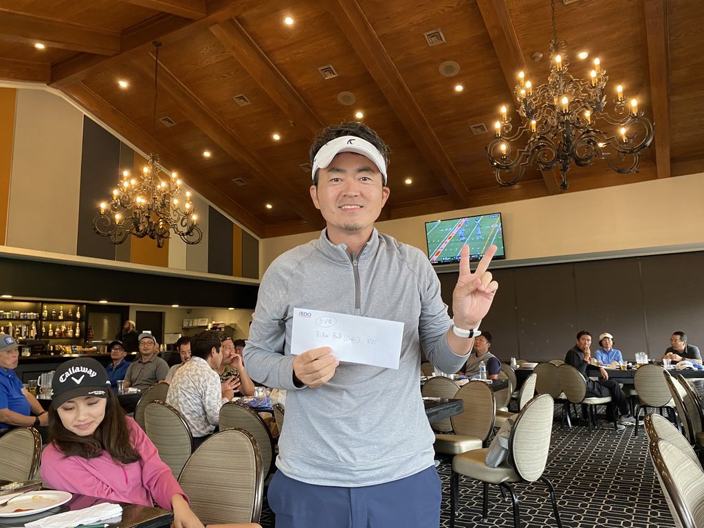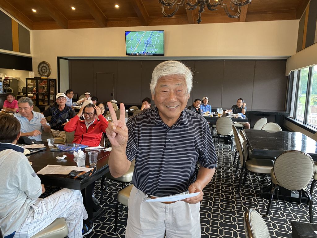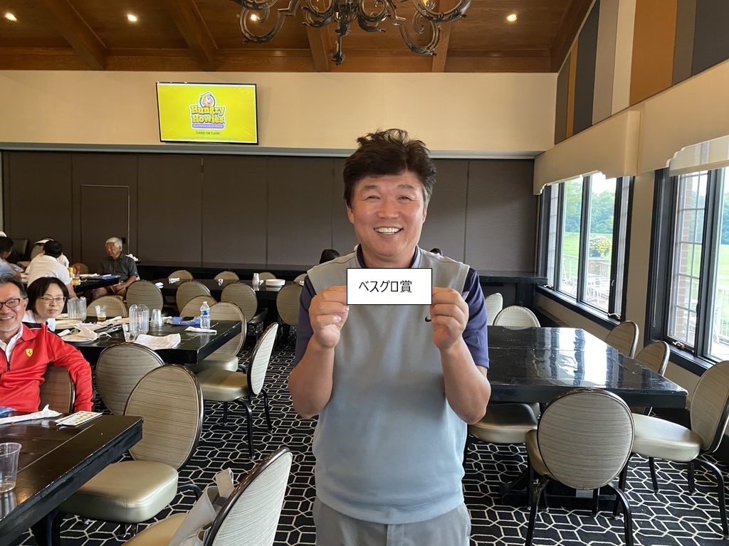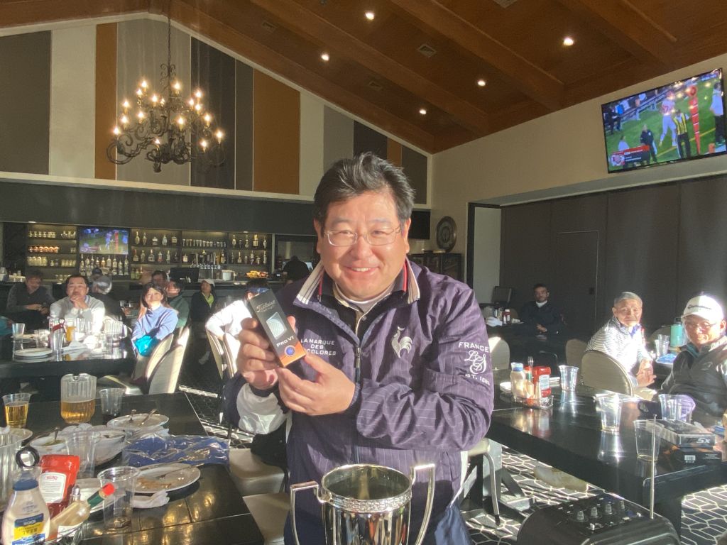 ![]() | 男性ドラコン賞にゲストベスグロも見事ゲットの比留間さん |