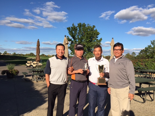 4月24日(日)、絶好のゴルフ日和の中、新規会員4名とゲスト参加8名を含む36名で、今年最初のミシガン会が開催されました。今年から優勝トロフィーを含む賞品や軽食メニューが一新され、 会員・非会員ともに参加費が$70に値下げされました。新優勝トロフィーを最初に手に入れたのは通算3回目の優勝となるNissanの林(ヤス)さん。グロス76で堂々のベスグロ優勝でした(ベスグロは10回目)。最近ショットが安定しているとの好調宣言で、 今年の活躍に期待です。2位は常に安定したゴルフをされるHirosawaの對馬さん。芥川Jrは本人不服のスコアだったようですが堂々の3位入賞。なお今年ミシガン会に協賛してくださった方々は、Fumi、Noble Fish、Sushi Den、Ta-chan、Golden Foxです。 これらは飛び賞や日付賞として会員の皆様の賞品に使わさせていただきます。協賛していただいた方々、今年もありがとうございました。 結果の詳細は こちら から。アルバムは こちらから。